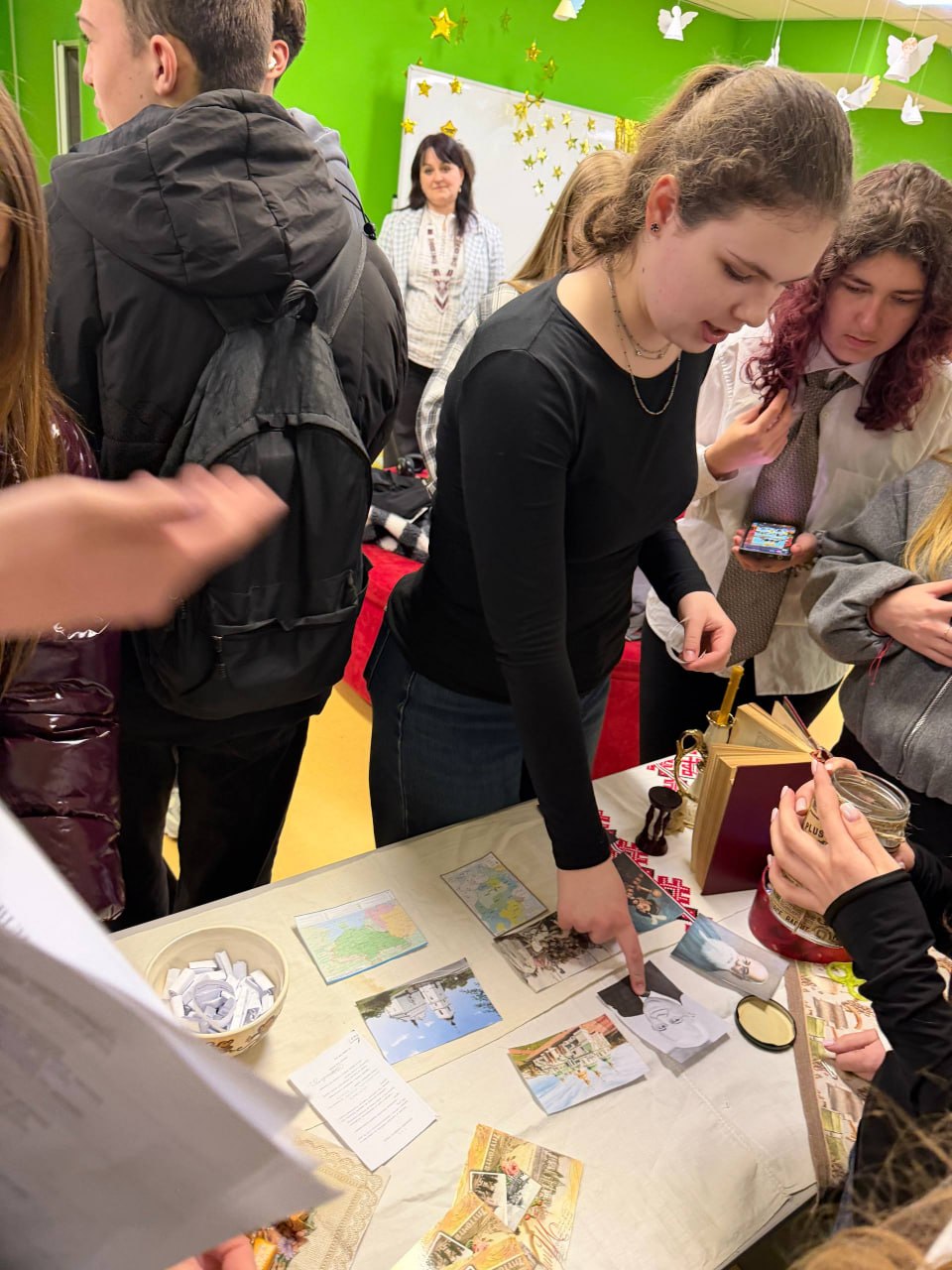 Учениці групи 11-В Войтович Ольга та Пʼятницька Аріадна підготували для ліцеїстів цікаві тести, серед яких квіз «Світи, що перетинаються: kahoot «Діалог культур» та вікторина «Хто це?», які допомогли пригадати історичних діячів і визначні події. Краснобока Юлія та Майківець Марина (11-В), а також Бакальчук Вадим і Легенчук Роман (11-Д) представили завдання за матеріалами НМТ з історії України. Ліцеїст групи 10-А Пшеничний Олексій презентував освітню веб платформу для вивчення історико-археологічних пам’яток України, яка поєднала історичну науку із сучасними технологіями.