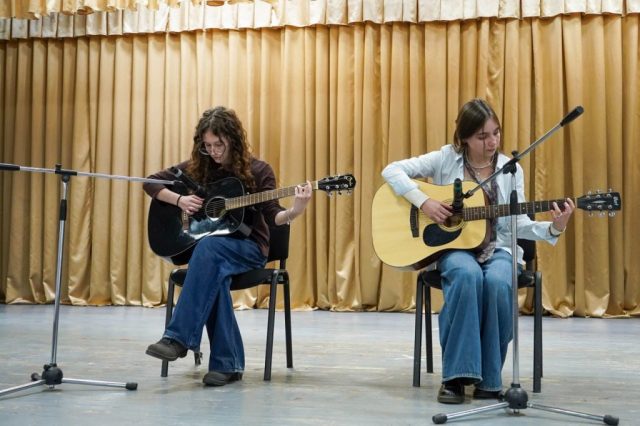 Подік Ольга (група 10-В) з подругою Агнесою зіграли на гітарі